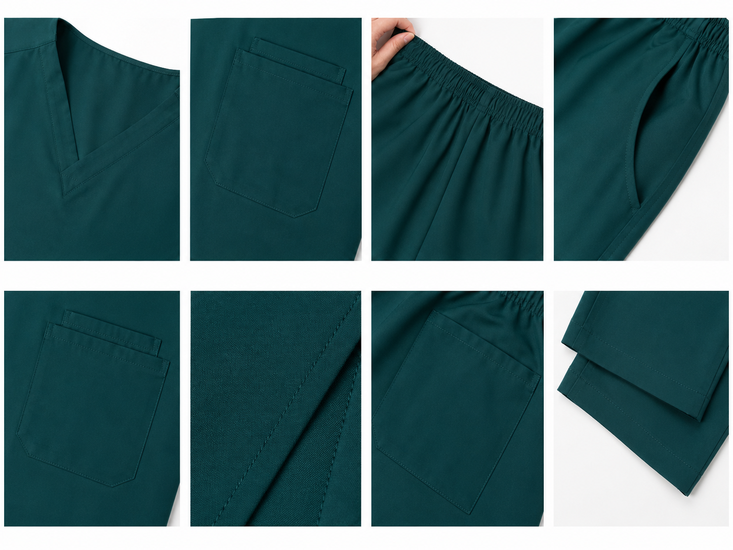 Este ambo está confeccionado con una combinación de materiales de alta calidad: 72% poliéster, 22% rayón y 6% spandex, lo que garantiza una tela resistente, flexible y cómoda. Su diseño permite libertad de movimiento, siendo ideal para largas jornadas laborales.
